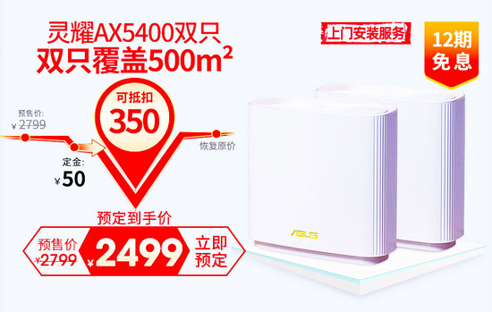 不住大别墅,可房间多,预算少,也想信号满满怎么办?来看看华硕灵耀魔方Mesh路由吧。它的身材虽小,却可以实现超大覆盖,两只覆盖300平米丝毫无压力,这得益于它的采用博通四核1.5G WiFi6芯片,支持最新的WiFi6标准,并发无线速度可达1775Mbps。采用两根45°倾斜天线多角度布局,信号覆盖面积广,大house,小别墅都能轻松拿下。内置硬件级引擎加速,DMIPS高达16500+,四倍多设备连接能力,支持OFDMA、MU-MIMO 2X2,可稳定连接200多台设备,实属强大。这款路由器两只原价999元,活动价只需799元,更可享受全国免费上门安装服务,6期分期免息,尾款前10名半价,前11-100名送TUFT恤。