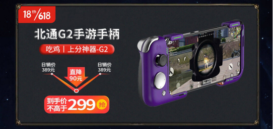 同理,另一款正进行预售的北通年度新品北通G2手游手柄 机甲紫原价三百八十九元,在经过定金膨胀、尾款九折还有叠加满200-30的优惠后,最终到手价不高于299元,相比原价节省了90元以上。