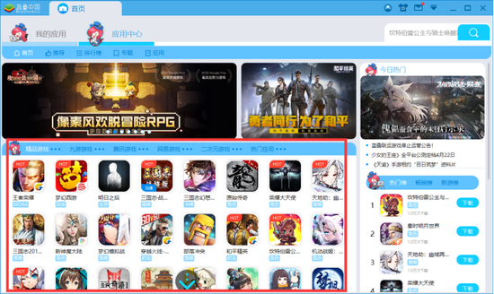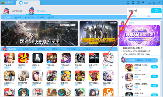 方法2:进入“应用中心”首页,通过推荐游戏,也可找到《七雄纷争》。