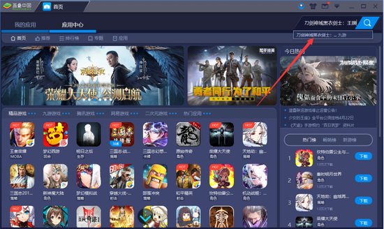 方法2:进入“应用中心”首页,通过推荐游戏,也可找到《刀剑神域黑衣剑士:王牌》。