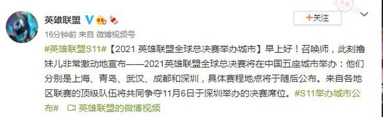 《英雄联盟》官微刚刚宣布2021年全球总决赛的举办地点在原有的深圳基础上再增加四座城市:上海、青岛、武汉和成都。具体赛程与地点将随后公布,决赛将于11月6日在深圳大运中心举行。