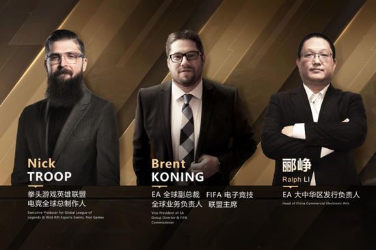 EA全球副总裁、FIFA电子竞技全球业务负责人、联盟主席Brent Koning,EA大中华区发行负责人郦峥,拳头游戏英雄联盟电竞总制作人Nick Troop分别对电竞前沿技术应用、创新赛事内容制作进行了分享,共同助力电竞赛事价值持续提升。
