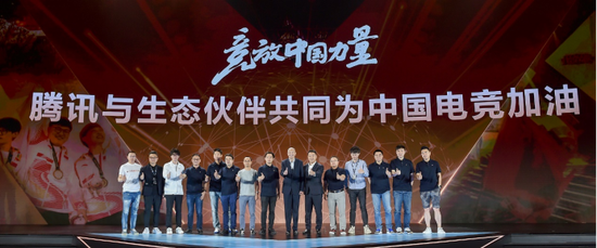 在大会上,腾讯电竞与生态伙伴共同为中国电竞加油,一起竞放中国力量!