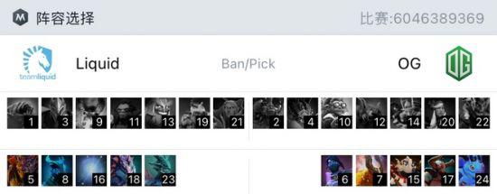 Liquid天辉,选择电魂老鹿大鱼三核,莱恩和精灵辅助。OG夜魇,选择圣堂帕克人马三核,发条和凤凰辅助。