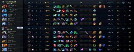30分钟双方下路交战,玛尔斯跳刀先手帕克,但是电魂没有跟输出,蜘蛛一个人输出不够,帕克残血逃走,而Liquid双辅助已经被切死,OG冲到高地再杀玛尔斯。34分钟双方野区遭遇,混沌又是幻象骑脸打死电魂,Liquid团战溃败,四人阵亡后打出GG。