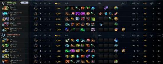 31分钟Vikin站上上路高地,Unique做出最后抵抗但是在精灵的恢复下Vinkin一人没死,Unique三人阵亡后打出GG。