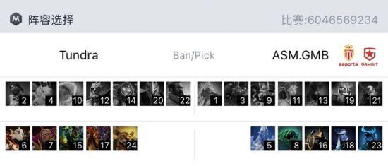ASM.GMB天辉,选择电狗帕克潮汐三核,小鹿和凤凰辅助。Tundra夜魇,选择美杜莎电魂龙骑三核,墨客和龙骑辅助。