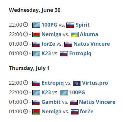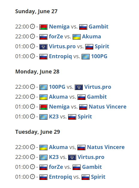 BLAST Premier春季决赛的两支领头羊队伍——Gambit和NaVi被划分在A组,他们将在战罢Akuma、forZe和Nemiga后,于最后一个小组赛比赛日——7月1日上演火星撞地球的好戏。
