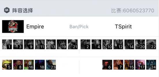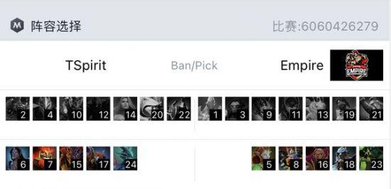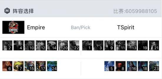 第二局比赛,Spirit拿出了露娜、森海飞霞、凤凰、圣堂刺客和孽主,Empire拿出了龙骑士、祈求者、米拉娜、恐怖利刃和电炎绝手。