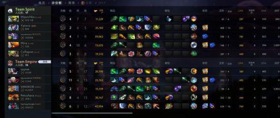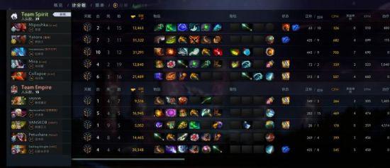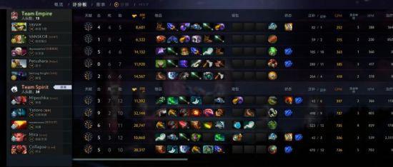 40分钟,坐拥5w经济优势的Spirit对Empire的下路高地发起了总攻,斧王配合莱恩将幽鬼和昆卡控住,莉娜与幻影刺客跟上输出将二人轻松斩杀。随后Empire溃不成军打出了gg。