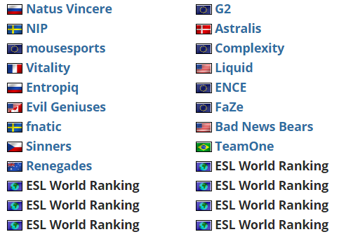 目前所有通过预选赛晋级EPL S14参赛队伍已经确定,剩余队伍将通过ESL世界排名邀请,目前参赛名单如下: