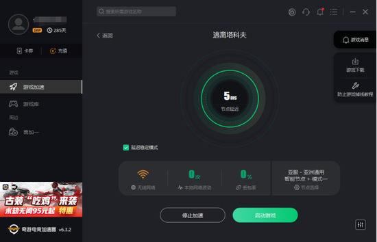 第一步,下载奇游,加速“逃离塔科夫”: