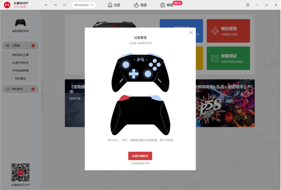 除了系统界面,连接手柄的状态下打开北通游戏厅软件能看到手柄型号可以被正确识别。