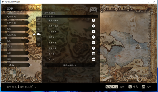 除了功能测试,在游戏测试环节使用手柄试玩《八方旅人》时,进入游戏后可以看到游戏内的按键识别正常,也可以使用手柄进行正确的操作。
