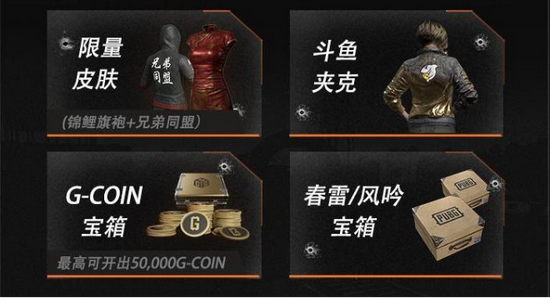 7月9日-7月11日,来全国网鱼网咖门店玩PUBG新地图(排位/匹配),吃鸡即可凭借吃鸡截图联系门店员工领取网鱼网咖专属CDK,限量锦鲤旗袍、兄弟同盟皮肤、斗鱼鸡斯卡夹克,G-COIN宝箱(最高可开出50,000G-COIN)、风雷/春吟宝箱等限量道具皮肤等你来拿!12000+CDK数量有限先到先得,感受鏖战吃鸡和开宝箱的双倍快乐!