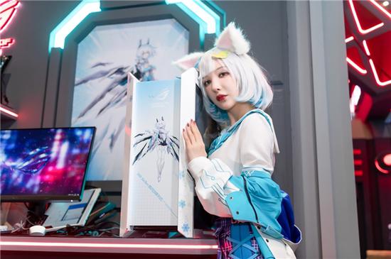 ROG信仰星球二次元区展示了最新华硕Z590吹雪、B560吹雪、B550吹雪主板,以及黑武士ROG C8DH(ROG CROSSHAIR VIII DARK HERO)主板,还有两套分别以黑红配色为主的RO姬、以蓝白为主的雪武战姬形态为主题的ROG全家桶,还有RO姬和雪武战姬常服真人COSer也吸引了众多玩家打卡合影,现场热闹非凡。