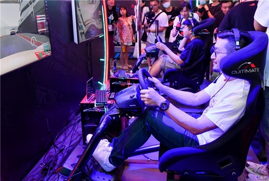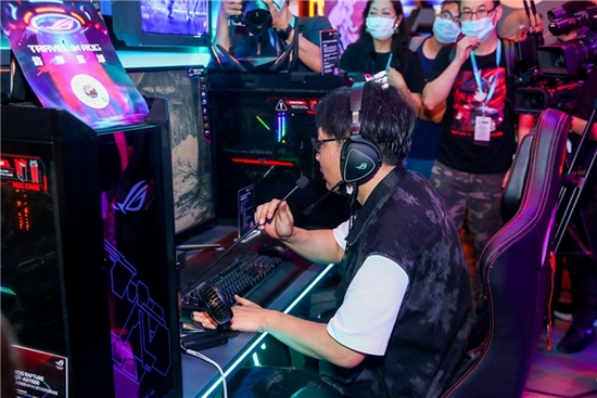 赛车模拟器体验区也是热闹非凡,参与摸“俞”大挑战的玩家络绎不绝。同时,华硕重炮手主板为此区电竞主机提供强力性能支持,助力玩家尽享速度豪情。