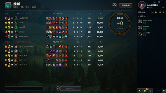 第三轮赛事在LULU战队及OVO战队之间展开,这场胜者组的赛事对决,决定着谁获胜,就直接获得了本届赛事~英雄联盟项目的冠军,负者将和复活的NS战队进行亚军的争夺战。双方战队为了最高的荣誉,为大家上演了当天最为精彩的赛事。整个赛事进行的是跌宕起伏、惊心动魄,双方经过近两个小时的激烈对决,最终LULU战队以2:1的总比分艰难地拿下对手,获得冠军。