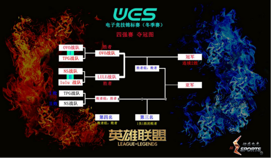 在另一场的4强赛的对决中,由第二组的第一名LULU战队对阵第一组第二名NS战队,LULU战队尽管在首场开局不利因素之外,先输一局,但在最后连扳两局,以2:1的总比分战胜了NS战队,同样也顺利晋级至胜者组。