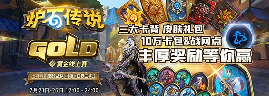 《炉石传说》黄金线上赛7月赛将于7月21日-7月26日正式打响,这是黄金线上赛首次包含标准、狂野、战棋三个模式的比赛,你只需在比赛日打开《炉石传说》PC客户端和官方插件即可随时加入这场盛事之中,赢取希尔瓦娜斯大型雕像手办模型、全新卡背“碧空流金”、酒馆战棋英雄包:暗影国度、酒馆战棋调酒师威·娜莉、黄金卡背、电竞之星卡背等丰厚奖励,更有10万“贫瘠之地的锤炼”&“疯狂的暗月马戏团”卡包与10万暴雪游戏点数等待各位玩家瓜分!