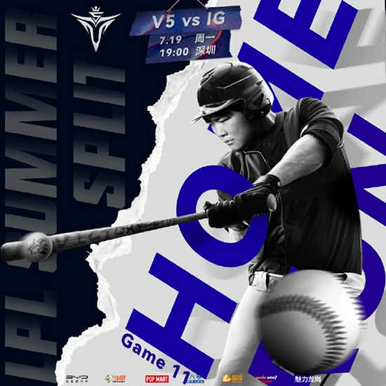 V5的海报标题是“挥·极”,代表V5的棒球运动员双手挥杆,蓄力一击打在写有“極”字的棒球上,希望这一球可以为自己带来夏季赛首胜。受疫情管控影响,本赛季V5的深圳主场一直无法开放,而今晚和iG的比赛将是V5主场的夏季赛首秀,如果V5能够获胜,那么这波战队首胜加新赛季主场开门红可谓“双喜临门”,但iG会让V5如愿以偿吗?