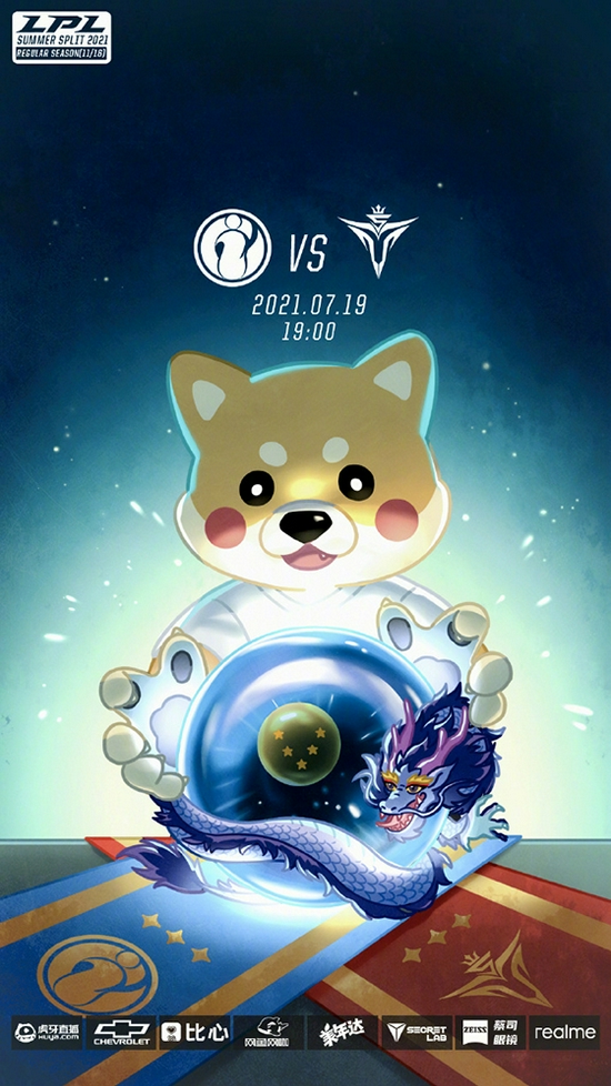 iG的海报标题为“握住胜利之珠”,吉祥物小柴犬的双爪紧紧握住了“大V天龙”守护着的“龙珠”,“龙珠”内的五颗五角星也组成了字母“V”的形状,“龙珠”下方则是印有两队LOGO的战旗~和V5的处境相仿,iG最近两周也陷入3连败的阴霾之中,现在积分3-7排名第14,剩余6场比赛必须全胜才能获得晋级季后赛的理论可能,因此接下来iG要打的每场比赛都可以说是“生死战”,绝对不容有失!