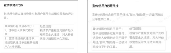 更多玩家的进入,也给行业发展带来了新的挑战,一些玩家开始使用代练、外挂等方式来破坏游戏公平。虽然都有一个“练”字,但陪练和代练是完全不同的两个概念,陪练主要工作为技术指导、游戏陪伴、提升游戏体验,不涉及使用他人账号代打、代练、约定完成指定成就,不违反公平竞技原则。而代练则是被雇佣的代练者使用他人游戏账号,根据约定在游戏中完成某些特定行为或成就。