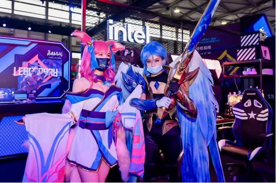 酷炫又科技感十足的展台布置吸引了不少游客围观,好看的coser小姐姐更是驻足合影。