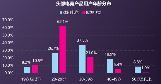 用户画像方面,据伽马数据统计,相比于中重度电竞产品,头部休闲电竞产品用户分布呈现出女性用户、30岁以上用户占比较高的状况,差异化的用户属性也是休闲电竞未来发展的重要机会。同时,吕慧波还指出,同步休闲电竞和传统电竞的用户存在较大差别,其中休闲电竞的女性用户和大龄用户的占比更高。