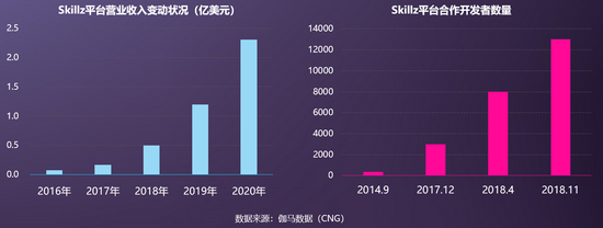 资料显示,截至2018年底,SKILLZ平台移动游戏开发者数量已超1.3万,平台与游戏开发者相互合作取得共赢。对于平台而言,与较多游戏开发者保持联系使得平台拥有更为稳定的游戏产出体系,强化产品供给侧活力,进而利用玩法内容维持用户黏性。对于游戏开发者而言,游戏开发者可以从产品赛事运营中得到部分分成,增加创收途径,以Tether Studios旗下游戏《空当接龙》为例,该产品上线初期日留存64%,周留存33%,月留存33%,每日平均用户收入仅为2美分,接入SKILLZ后增长至45美分,用户人均付费增长超20倍。目前SKILLZ平台月均发放奖金已超1亿元,2020年共有36款游戏GMV超百万美元,高收入产品数量连续多年快速增长。值得注意的是,受到SKILLZ商业模式的启发,在此次会议上天神娱乐(002354.SZ)正式推出了中国版全民休闲电竞平台——PK.NOW!,从电竞、发行、出海和大数据等方面全面赋能休闲游戏CP,引起了广泛的共鸣和赞同。