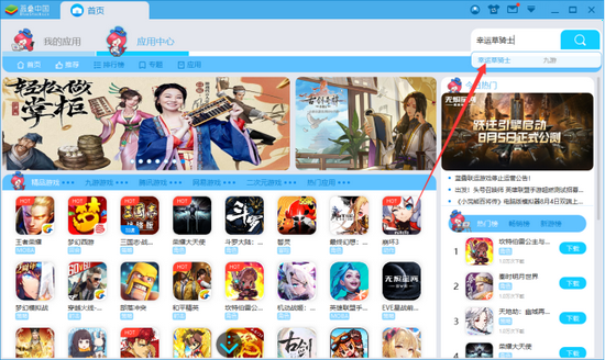 方法2:进入“应用中心”首页,通过推荐游戏,也可找到《幸运草骑士》。