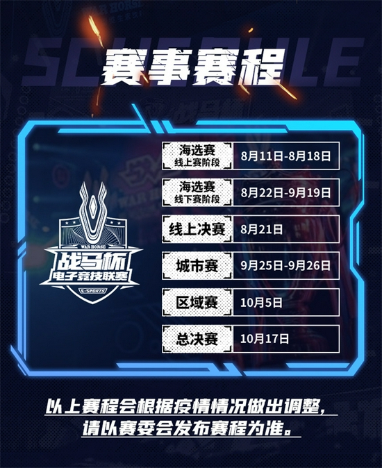 本届赛事覆盖广东省7大城市、5大赛区,脱颖而出的实力战队将代表广州赛区参与战马杯广东总决赛,与深圳、东莞等其他四大赛区玩家一决高下!