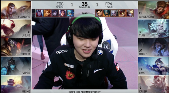 在8月8日晚上的FPX和EDG的常规赛榜首大战中,FPX以2比1的比分战胜了EDG成功拿到了今年夏季赛的常规赛第一,也让夏季赛常规赛画上了一个句号。这个BO3可谓是大起大落。