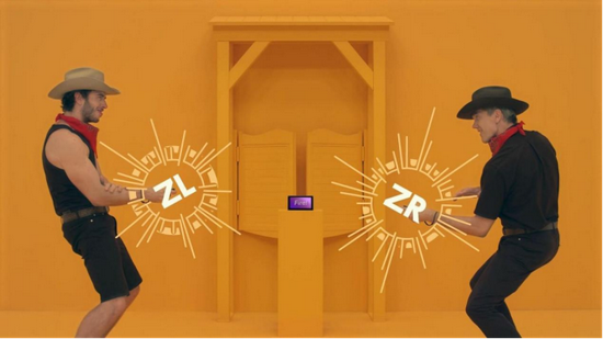 作为Switch的首发护航作品,《12Switch》收录了数十个与朋友比拼反应力的小游戏,在这款体感游戏中,两位玩家可以各持一个手柄,进行西部电影似的生死对决,比的就是手速。游戏将joycon的体感功能和游戏性发挥到了淋漓尽致的地步,可以说是完全贯彻了任天堂Switch的理念——朋友之间随时随地一起愉快的玩游戏。
