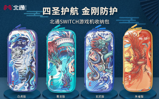 对于单身朋友们,北通也非常贴心地同期推出了国风四神兽版Switch收纳包,继承了国风原版Switch收纳包的出色用料外,召唤了青龙、白虎、朱雀、玄武四方神兽镇守你心爱的游戏机,无论是聚会派对还是路边街拍,带上四神兽收纳包,成为全场目光焦点。