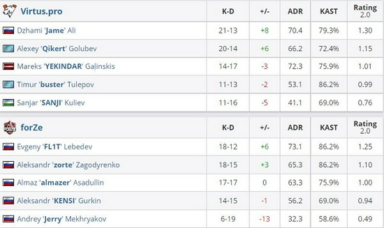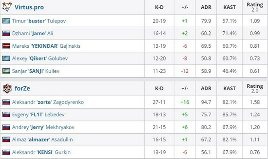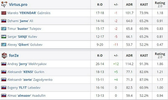 forZe 2-1 Virtus.pro(Mirage 16-7;Dust2 13-16;Overpass 16-12)