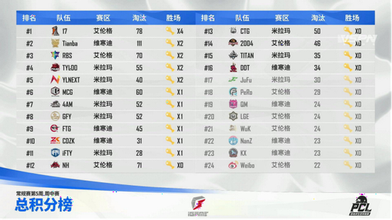 周中赛:17战队4鸡领跑,Tianba战队火力全开