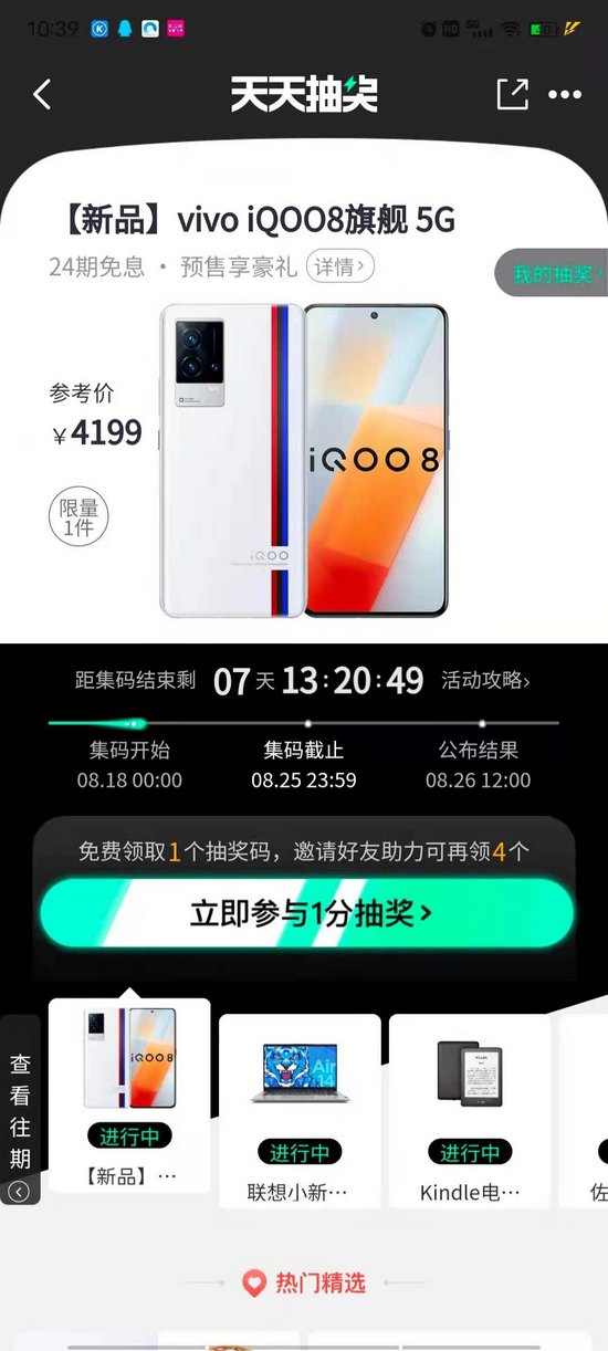 如果朋友们没有抽中iQOO 8,但又对它很感兴趣的话,还可以到招商银行掌上商城购买,除了能够享受24期免息福利外,提前预定并购买iQOO 8 12GB+256GB版本还能领取100元优惠券!当然,在8月25日的iQOO&招商银行超级品牌日当天,前往直播间参与互动抽奖还可赢取更多好礼,朋友们千万不要错过了!