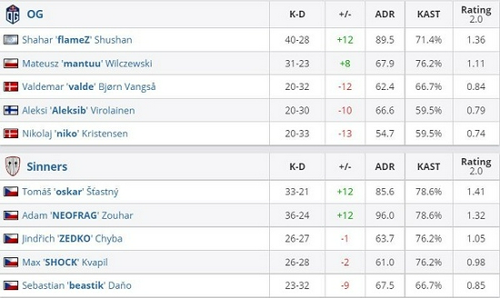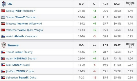 OG 2-1 Sinners(Nuke 20-22;Inferno 16-10;Mirage 16-7)