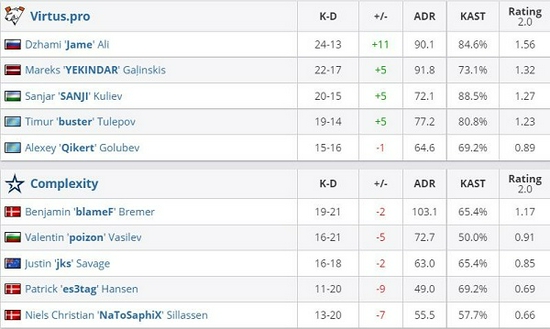 Complexity 2-1 Virtus.pro(Mirage 10-16;Dust2 16-14;Overpass 16-14)