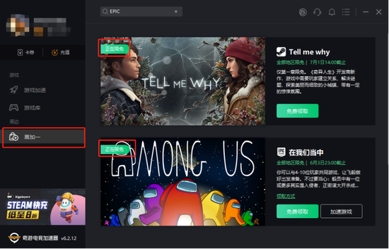 有部分玩家在EPIC商城领取免费游戏的时候,会出现无法打开商城/领取失败的情况,这是网络不稳定所造成的,只需要使用加速器进行加速优化即可,奇游针对EPIC有专项网络适配,一键加速可以轻松打开商城,顺利领取免费游戏。最近奇游针对【EPIC限免领取】开放永久免费加速,相信这对于Epic玩家来说是一个不小的福利: