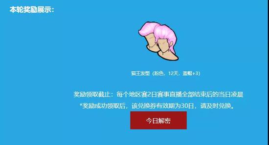 奖励领取截止:每个地区赛2日赛事直播全部结束后的当日凌晨,奖励成功领取后,该兑换券有效期为30日,请及时兑换。