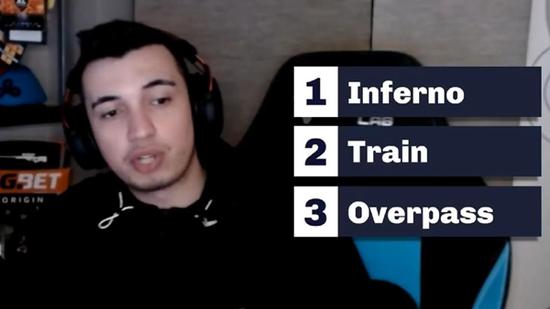 woxic的答案:“Inferno,Train、Overpass。第一名是Inferno,因为我在这张地图上有很高的自由度,能够大显身手,拯救队伍。比如说我在大路了,我又在小路了,我又在B了,我转点了,我推进了,我打闪了,我又在第二中路了等等。”
