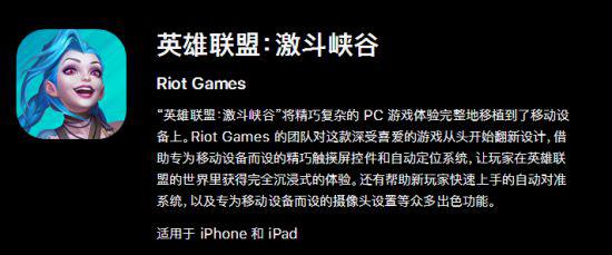 官方点评《英雄联盟:激斗峡谷》手游获得“创新思维”奖:“英雄联盟:激斗峡谷”将精巧复杂的PC游戏体验完整地移植到了移动设备上。Riot Games的团队对这款深受喜爱的游戏从头开始翻新设计,借助专为移动设备而设的精巧触摸屏控件和自动定位系统,让玩家在英雄联盟的世界里获得完全沉浸式的体验。还有帮助新玩家快速上手的自动对准系统,以及专为移动设备而设的摄像头设置等众多出色功能。