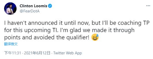 这次执教TP也将是Fear在TI7作为教练随EG出战后首次重回TI舞台,他将在斯德哥尔摩遇到同样成为了教练的老队友ppd。
