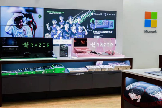 在此次活动中,玩家们可以在下图所示的微软店里买到微软、雷蛇的专业竞技装备,而且线上线下同价。不仅如此,活动期间只要前来体验就会有礼品赠送。