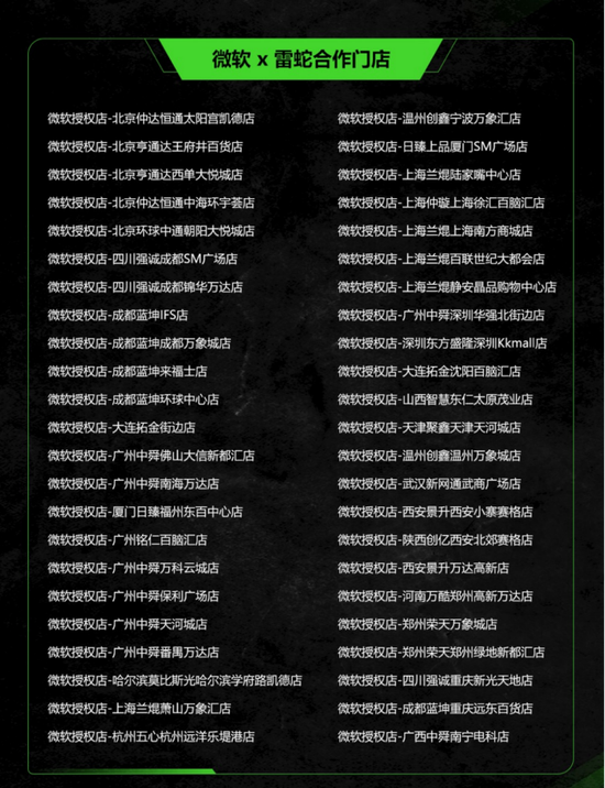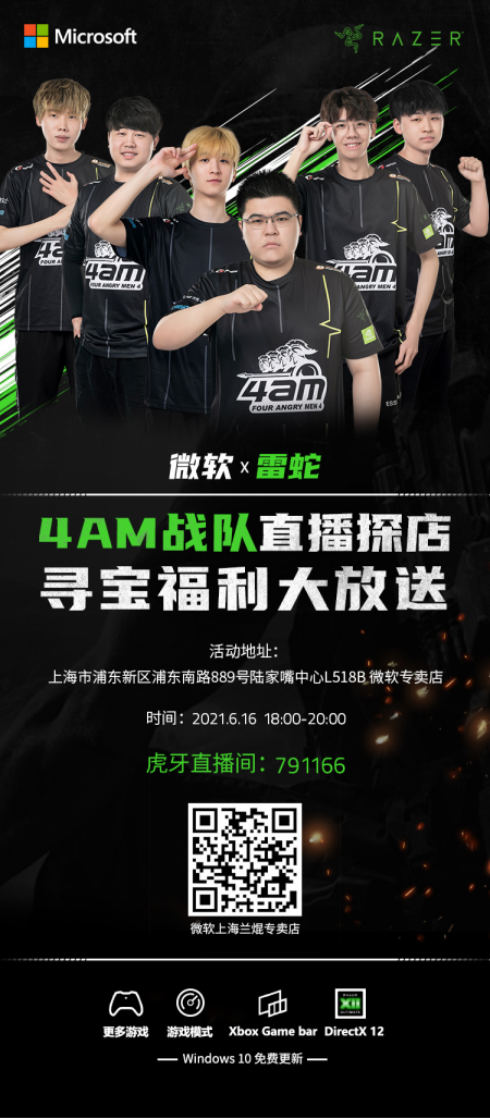 在今年4月底,微软中国和Razer雷蛇强强联手举行了“让游戏走进生活”活动,全国47家微软授权店设立“Microsoft微软 x Razer雷蛇”联合专区,致力于打造Z世代游戏生活新方式,让更多的年轻人感受不一样的电竞氛围,享受不一样的游戏乐趣!此次4AM战队618直播探店活动,锁定了设立有“Microsoft微软 x Razer雷蛇”联合专区的微软商店,一次给粉丝们带来两个品牌的福利。