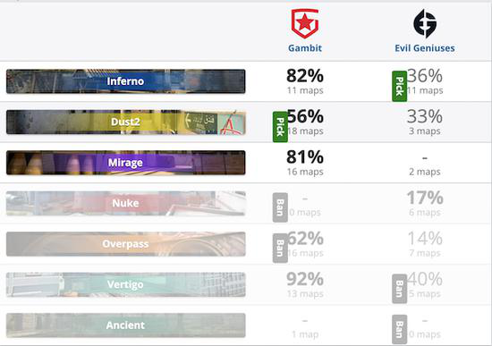 Gambit 2-0 EG(Inferno 22-20;Dust2 16-11;Mirage)