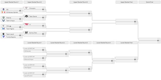 在首轮的比赛中,OG战队将对阵AS Monaco Gambit,Alliance战队将对决Unique战队,Vikin.gg战队将迎战Nigma战队,Liquid战队将与Tundra战队展开战斗。而在胜者组第二轮里,VP战队、Secret战队、T1战队和QC战队这四支已经获得直邀名额的队伍将各自迎战从第一轮杀上来的队伍。