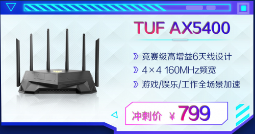TUF GAMING AX5400电竞特工路由,618冲刺价799元。